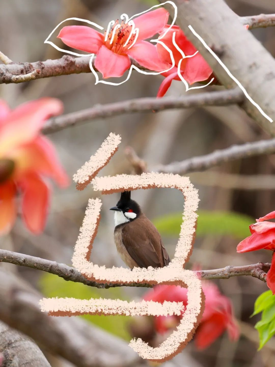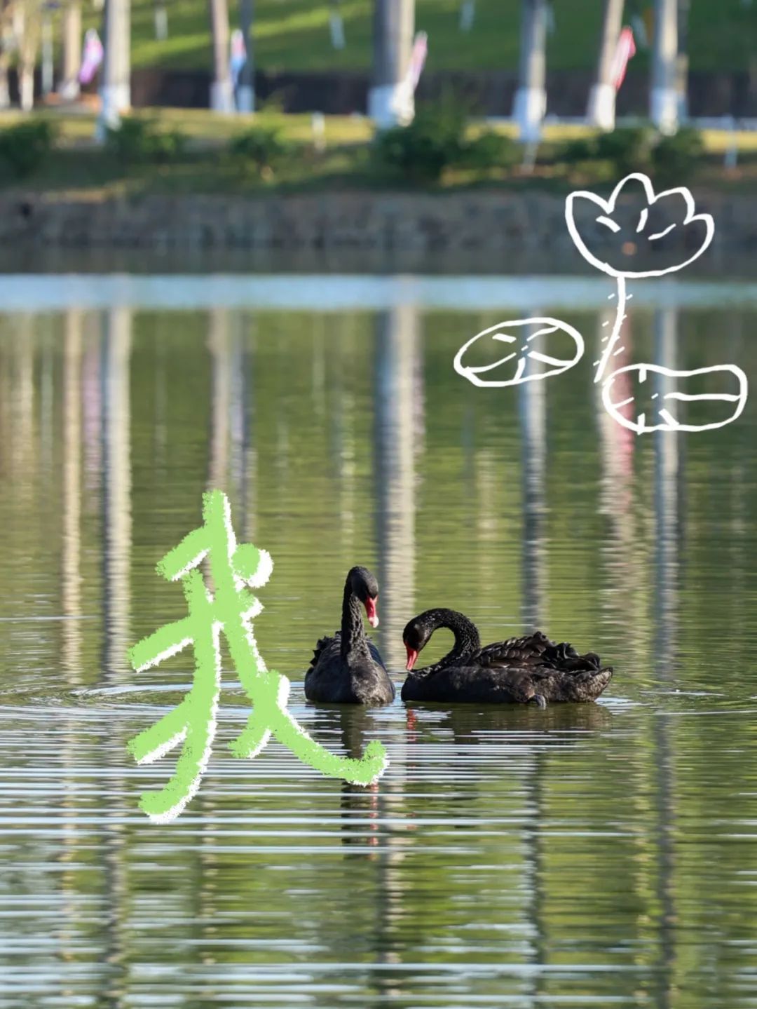 有华南农业大学校园里的悠闲游春的天鹅与红耳鹎